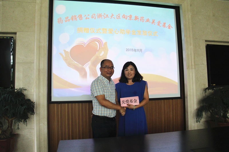 8月7日上午,一场简短而温馨的仪式在公司行政楼一楼聚会室举行。药品销售公司刘顺军司理代表浙江大区全体干部员工将12000元部分运动经费捐赠给公司“关爱基金”,并将其中4000元资助给公司2名难题同事的子女上大学,工会主席何苏红和2名学子接受了这凝聚着浓浓爱心的款子。